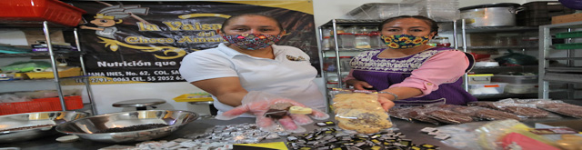 ▲ Edith Santana y Daniela Jiménez, originarias de Santa Cruz Acalpixca, decidieron llevar al mercado sus productos de autoconsumo, como paletas, galletas y calaveritas de chocolate en las celebraciones de Día de Muertos y ferias populares. Para diciembre prevén vender un churro preparado con harina de amaranto, semilla que requiere conocimiento especial en su manipulación para que no se haga chiclosa, la cual se cultiva en Tulyehualco. Requieren apoyo para adquirir una máquina especial. Foto Yazmín Ortega. Elba Mónica Bravo