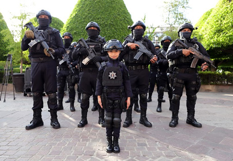 ▲ Los gobiernos de Irapuato y León promueven actividades de corporaciones locales de seguridad con imágenes de menores vestidos de policías. Expertos en derechos humanos de la infancia lo consideran un