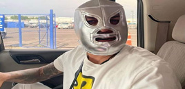 ◀ Tras arribar a México, el brasileño de 39 años, quien tiene el récord de títulos con 44 en total, se puso una máscara de El Santo. Foto tomada de Instagram