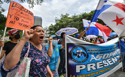 ◀ El gobierno del presidente Laurentino Cortizo y dirigentes magisteriales y sindicales alcanzaron un consenso para reducir y controlar el precio de más de 70 productos de la canasta básica de alimentos. La mesa de diálogo intenta poner alto a las protestas por el elevado costo de la vida. Aún falta concertar otros puntos, como el tope a la utilidad de empresas. Foto Afp. Agencias