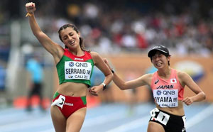 Tenía que hacer una actuación increíble, y así lo hice, celebra Karla Ximena Serrano, quien logró un cierre espectacular sobre Ai Ooyama, con lo que dio al país su primer título en el Campeonato Mundial de Atletismo Sub-20 en Cali, Colombia. El puño en alto de la mexicana, quien logró su mejor marca, con 46:24.35 minutos, contrastó con la mueca de impotencia de la japonesa, quien registró 46:24.44. Foto World Atletics