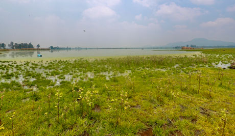 ▲ En la zona lacustre, que comparten la alcaldía capitalina y el municipio mexiquense Valle de Chalco Solidaridad, se vierten canales de aguas negras y, en un recorrido, también se apreciaron tiraderos de basura y cascajo. Hace una década, los espacios que se secaron fueron aprovechados para edificar y crear colonias, como la de San Miguel de las Tablas. Actualmente, los gobiernos capitalino y federal tienen planes para la recuperación del lugar con una inversión de 4 mil millones de pesos. Foto Luis Castillo. / Ángel Bolaños