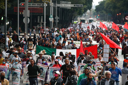 Será doloroso para nuestras familias saber su destino, sobre todo si es sin vida, pero si nos dan pruebas indubitables nos iremos a la casa a llorarles y a vivir nuestro duelo, señalaron padres de los 43 estudiantes desaparecidos el 26 de septiembre en Iguala, Guerrero, tras marchar del Ángel de la Independencia al Hemiciclo a Juárez, en la capital del país. En lo que fue su primera declaración conjunta tras conocer el informe de este gobierno sobre el destino de sus hijos, reconocieron la aceptación de que fue un crimen de Estado, como ellos siempre dijeron. Advirtieron que no claudicarán en su exigencia de justicia y verdad. Foto Víctor Camacho / J. Xantomila