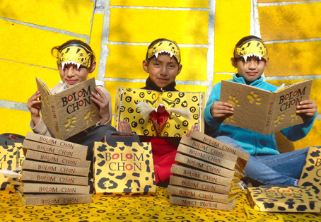▲ Integrantes del taller maya tsotsil, con residencia en San Cristóbal de las Casas, Chiapas, expresaron su felicidad por haber obtenido el Premio Nacional de Artes y Literatura 2021 en el rubro de Artes y Tradiciones Populares, pero también su desconfianza de que no haya pronta entrega, ya que en los gobiernos de Felipe Calderón y Enrique Peña Nieto se postularon con valiosa obra, la cual nunca fue devuelta. En la imagen, pequeños lectores muestran la edición de Bolom Chon. Foto cortesía de Leñateros. Mónica Mateos-Vega
