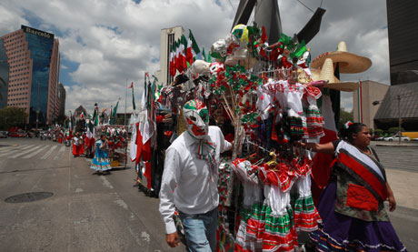 ▲ Comerciantes desfilaron ayer por Reforma antes de instalarse en el primer cuadro de la Ciudad de México para ofrecer artículos alusivos a las fiestas por la Independencia. Autoridades capitalinas autorizaron desplegar 168 carritos hasta el 16 de septiembre. Podrán colocar dos por cuadra, con restricción en las principales vialidades, como Madero, Donceles y la ruta de la línea 4 del Metrobús, así como los pasos de peatones. Tienen prohibido vender pirotecnia, playeras u otras mercancías. El presidente Andrés Manuel López Obrador anunció que este año el