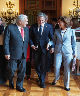 ▲ El presidente Andrés Manuel López Obrador recibió ayer a los secretarios de Estado y de Comercio de Estados Unidos, en un encuentro de una hora 50 minutos a puerta cerrada. Antes, en la sesión del segundo Diálogo Económico de Alto Nivel México-Estados Unidos se abordaron los temas de seguridad, migración, tráfico de armas y drogas, y cooperación económica. Foto Presidencia