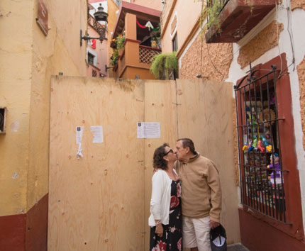 ▲ Un desacuerdo entre la dueña del balcón de Ana y fotógrafos del ayuntamiento de Guanajuato llevó al alcalde panista Alejandro Navarro Saldaña a clausurar con tablas los dos accesos al sitio emblemático de la capital del estado, la cual es Patrimonio Cultural de la Humanidad.