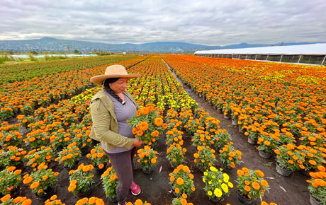▲ En los ejidos de San Gregorio Atlapulco, Xochimilco, los agricultores tienen listas miles de plantas para ser enviadas a los mercados ante las festividades por el Día de Muertos. Autoridades han informado que se espera una derrama de 117 millones de pesos por la venta de la emblemática flor, la cual se cultiva en la mencionada alcaldía, además de Tláhuac y Milpa Alta. Foto Luis Castillo