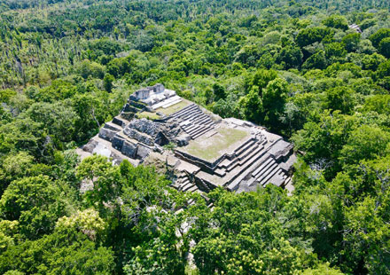 ▲ El complejo ceremonial de Ichkabal consta de cinco edificios. El principal tiene una base similar a la pirámide del Sol de Teotihuacan, de 250 metros de lado, y una altura de 40. La Jornada hizo un recorrido en exclusiva por la ciudad milenaria, la cual es considerada una de las urbes más grandes e importantes del área maya del periodo preclásico tardío. La imagen es de la estructura 4. Foto Luis Castillo
