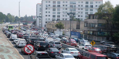 ▲ Las filas de autos en ambos sentidos de Periférico superaron ayer seis kilómetros luego de la volcadura de un camión de carga a la altura de Perisur, mientras en otros puntos de la ciudad, como Viaducto (imagen), el caos vial se debió a la Fórmula Uno, que ayer empezó prácticas. En el Centro, desde temprano se cerró la circulación en Reforma hacia la iglesia de San Hipólito, ante la llegada de devotos de San Judas Tadeo. También aumentó el tránsito vehicular por la apertura de actividades relacionadas con el Día de Muertos, el pago de quincena para muchos y el inicio del asueto correspondiente a la festividad de noviembre. Foto José A. López. J. Quintero