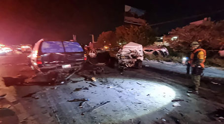 ▲ Un tráiler que aparentemente se quedó sin frenos provocó anoche el choque de al menos 18 vehículos, varios de los cuales se incendiaron, a la altura de San Juan del Río en dirección a Querétaro. Autoridades reportaron que unas 21 personas resultaron heridas. Videos que circulan en redes sociales muestran al menos dos autos volcados. Foto tomada de Twitter
