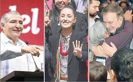 ▲ El secretario de Gobernación, Adán Augusto López (izquierda), acudió ayer a Baja California Sur, como parte de su recorrido por el país para promover el apoyo de los congresos locales a la reforma constitucional de las fuerzas armadas, mientras la jefa de Gobierno, Claudia Sheinbaum, se reunió en la capital con síndicos, regidores y alcaldes de 22 entidades, y el canciller Marcelo Ebrard acudió a un encuentro con Mujeres por una ciudad igualitaria, en Tlalpan. Fotos tomadas de Twitter y Yazmín Ortega Cortés