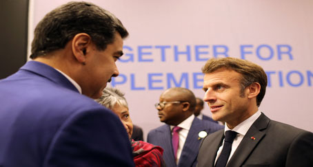 ▲ Antonio Guterres, secretario general de la ONU, puso al mundo ante esa disyuntiva en la Conferencia de Naciones Unidas sobre el Cambio Climático (COP27). Apremió a concluir el acuerdo entre países industrializados y en desarrollo, el cual busca comprometer a todos a reducir sus emisiones de carbono en esta década para limitar el aumento global de la temperatura a 1.5 grados Celsius. En la cita en Egipto, los presidentes de Venezuela, Nicolás Maduro (izquierda), y de Francia, Emmanuel Macron, tuvieron una charla. Foto Afp. Agencias