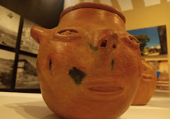 ◀ Vasijas, comales, molcajetes y múltiples figuras de animales conforman la exposición En Cuentepec barro se dice sokitl, que se expone en el Museo de Arte Indígena Contemporáneo, en Cuernavaca. Foto H. Bellinghausen.