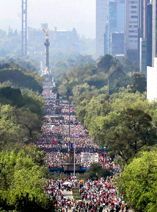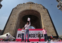 ◀ José Woldenberg, primer consejero presidente del entonces IFE, fue el orador único en la manifestación que culminó en Plaza de la República. Foto Marco Peláez
