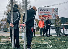◀ Tras el encuentro, la Casa Blanca afi rmó que no hay negociaciones de paz secretas con el Kremlin. En la reconquistada Jersón (imagen), dos colaboracionistas rusos fueron atados. Foto Ap.