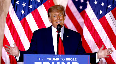 ▲ El ex presidente estadunidense anunció su candidatura por el Partido Republicano desde su club privado Mar-a-Lago, en Florida. Foto Afp