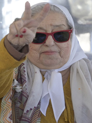 ▲ La histórica dirigente de las Madres de Plaza de Mayo murió a los 93 años. En plena dictadura militar, en 1977, encabezó el movimiento de mujeres de pañuelos blancos que exigían informes sobre sus familiares secuestrados o desaparecidos. En esa época de terror, Bonafini perdió a dos hijos y una nuera. El presidente y la vicepresidenta de Argentina, Alberto Fernández y Cristina Fernández, destacaron que fue símbolo mundial de la lucha por los derechos humanos. Foto Afp. Stella Calloni, Corresponsal