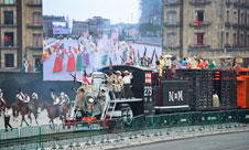 ► El transporte, que data de 1929, fue colocado en el Zócalo y enmarcó el 112 aniversario del inicio de la Revolución Mexicana. Civiles y militares recrearon escenas históricas de esa época. Foto Cristina Rodríguez