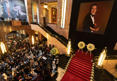 El telón se bajó para un hombre de izquierda que fue muy derecho, se recalcó. La ceremonia fue realizada en el vestíbulo del recinto, donde familia, amigos, colegas, funcionarios y admiradores tributaron un gran aplauso cuando fueron colocadas las cenizas del actor, productor y director en un pedestal. El recuento de su vida y