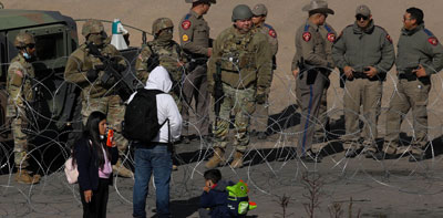 ▲ La Guardia Nacional texana desplegó 400 efectivos entre El Paso y Ciudad Juárez para impedir que migrantes crucen el río Bravo para pedir asilo. El presidente Joe Biden pidió a la Corte Suprema estadunidense que ponga fin a las restricciones previstas en el Título 42, que permite la expulsión inmediata de indocumentados. Foto Afp. / Corresponsales y Agencias
