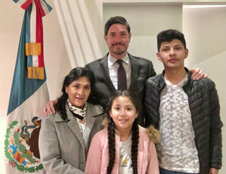 ▲ El embajador de México en Perú, Pablo Monroy Conesa; la esposa del destituido presidente Pedro Castillo, Lilia Paredes, y sus hijos Arnoldo y Alondra, partieron en la madrugada desde Lima en un vuelo comercial hacia la Ciudad de México, tras abandonar la legación nacional al filo de las 22:17 horas. Foto La Jornada