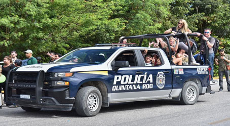 ▲ Choferes afiliados al Sindicato de Taxistas Andrés Quintana Roo impidieron el paso durante más de dos horas a la avenida Kukulcán, en rechazo a que la plataforma de transporte Uber opere en la ciudad. Ante la protesta fue aplicado un operativo con cuerpos antimotines e integrantes de la Guardia Nacional y la Marina, así como de apoyo a turistas que se dirigían al aeropuerto. Finalmente, los agremiados desistieron de la movilización. Foto La Jornada. Patricia Vázquez, Corresponsal
