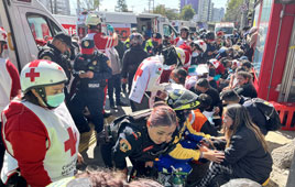 ◀ Cuerpos de auxilio atienden a usuarios desalojados en la estación Barranca del Muerto, luego del desprendimiento de un cable que causó una humareda. Guillermo Calderón, director del STC, dijo que la fiscalía abrió pesquisa. Foto L. Castillo.