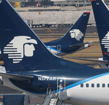 ▲ Aeroméxico obtuvo el aval de autoridades nacionales y de Estados Unidos para iniciar vuelos directos desde el Aeropuerto Internacional Felipe Ángeles hacia la terminal George Bush en Houston, Texas, a partir del primero de mayo. La medida podría abrir camino hacia la recuperación del país del nivel 1 en seguridad aeronáutica. Foto Afp. / Dora Villanueva