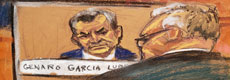 ▲ Juicio de Genaro García Luna en NY. Ilustración Jane Rosenberg