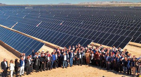 ▲ Vista de la planta fotovoltaica en Puerto Peñasco, Sonora, la cual está conformada por miles de paneles solares instalados por la Comisión Federal de Electricidad. El canciller Marcelo Ebrard encabezó la visita al lugar en compañía de 80 embajadores y 25 representantes de organismos internacionales. Estimó que la inversión en el Plan Sonora podría ascender a 48 mil millones de dólares de esta fecha a 2030. En la primera etapa sólo participarán México y Estados Unidos. Foto La Jornada
