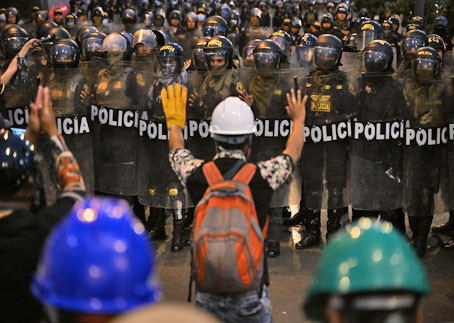 ▲ El paro nacional continuó en diferentes regiones de Perú, con 69 bloqueos viales en todo el país debido a las manifestaciones contra el gobierno y el Congreso, con reivindicaciones indígenas y reproches desde las zonas de la nación andina más ricas en gas, minería y tierras agrícolas. En Lima (imagen) se congregaron miles en la plaza Dos de Mayo, en una protesta que describieron como
