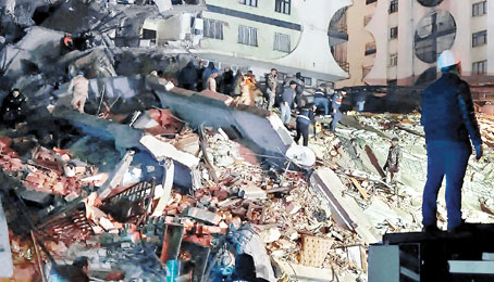 ▲ Un terremoto de magnitud 7.9 causó el derrumbe de decenas de edificios en los dos países. En las provincias turcas de Osmaniye, Kahranmanmaras y Diyarbakir (imagen) reportan 76 fallecimientos. El presidente Recep Tayyip Erdogan dijo que se enviaron de inmediato equipos de rescate. En el noroeste de Siria, fuentes médicas dieron cuenta de al menos 99 decesos. Foto Ap. Agencias