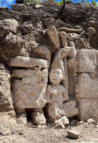 ▲ El presidente Andrés Manuel López Obrador supervisó ayer el avance de las obras en Yucatán, tras lo cual compartió en redes la foto del hallazgo de una escultura prehispánica (imagen) en el trazo que pasa por Ek Balam, captada por el director del INAH, Diego Prieto.