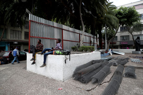 ▲ La alcaldesa de Cuauhtémoc continúa con la colocación de láminas y malla ciclónica en el espacio ubicado en la colonia Juárez, pese a no contar con la autorización de la Seduvi y el Inbal para la remodelación del lugar, el cual era ocupado, hasta hace unos días, por migrantes. Autoridades llamaron a revisar el proyecto, pero la demarcación no ha respondido. Foto Alfredo Domínguez. / Elba Mónica Bravo