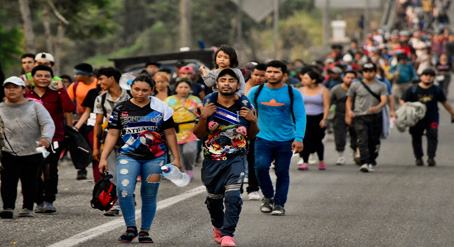 ▲ Los 4 mil extranjeros que participan en el viacrucis migrante arribaron ayer a Huehuetán, Chiapas, después de recorrer 10 kilómetros. El director de la organización Pueblos sin Fronteras, Irineo Mujica, organizador de la marcha, informó que tuvieron una reunión con representantes de la CNDH para acordar un posible diálogo con autoridades federales. El secretario de Gobernación, Adán Augusto López, ofreció garantías para el libre tránsito del contingente de indocumentados. Foto Ap. Elio Henríquez, Corresponsal