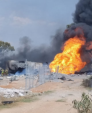 ▲ La ordeña ilegal de combustible provocó la explosión de un ducto de Pemex en un predio del poblado El Tesoro, municipio de Polotitlán, estado de México. Las autoridades reportaron que nueve personas sufrieron quemaduras de primer y segundo grados, entre ellas tres trabajadores de la petrolera. Al cierre de la edición, la empresa dijo que el siniestro estaba controlado. En la zona hay gran actividad de bandas huachicoleras. Foto La Jornada. / Corresponsales