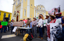 ◀ Integrantes de la Coordinadora Nacional de Organizaciones Cafetaleras protestaron en Xalapa por la