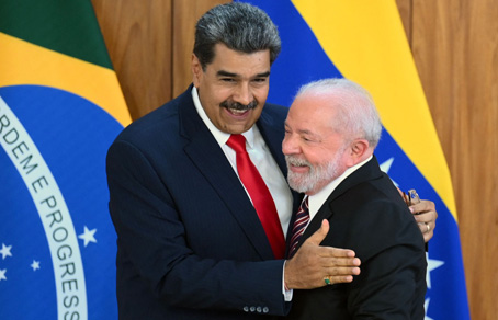 ▲ El mandatario de Brasil, Luiz Inácio Lula da Silva, recibió ayer con honores a su par de Venezuela, Nicolás Maduro, y juntos anunciaron el inicio de una