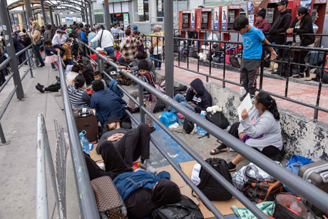 ▲ Unos 250 migrantes permanecen en el paso peatonal del cruce de San Ysidro, California, en espera de que agentes de Aduanas y Protección Fronteriza de Estados Unidos les permitan ingresar para efectuar los trámites de asilo. Los extranjeros, de diversas nacionalidades, realizaron un largo éxodo para llegar a Tijuana, Baja California. Foto Afp