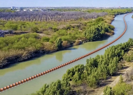 ▲ El gobernador Greg Abbott empezó ya el despliegue de barreras marítimas flotantes desde Eagle Pass para impedir el cruce de indocumentados por el río Bravo (imagen), y amplió la autoridad de agentes para registrar y detener a sospechosos de delitos graves. También promulgó un paquete de seis proyectos de leyes de seguridad fronteriza con los que busca frenar la migración irregular, así como el trasiego de armas y drogas, además de que endurece las penas por esos delitos. Foto tomada de Twitter / Redacción