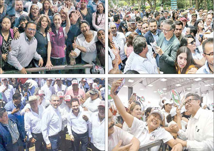▲ En la sesión de hoy, el Consejo Nacional del partido en el poder aprobará la convocatoria y los lineamientos para la selección de su candidato a la Presidencia, proceso en el que participarán la jefa de Gobierno, Claudia Sheinbaum (arriba, en un acto del viernes); en imágenes de ayer, el secretario de gobernación, Adán López (abajo a la izquierda, en Puebla); el titular de Relaciones Exteriores, Marcelo Ebrard (arriba a la derecha, en Los Pinos), y el senador Ricardo Monreal, en Sinaloa. Fotos josé Antonio López y Twitter