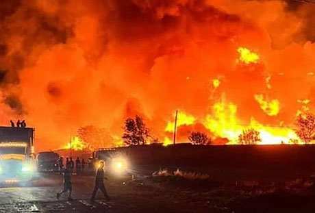 ▲ Uno de los tres siniestros que comenzaron hace 15 días y que han consumido más de 10 mil hectáreas en el municipio serrano de Madera, en la Sierra Tarahumara, alcanzó viviendas del ejido El Largo y un aserradero en Las Varas. Gracias a los videos que se han difundido en redes sociales, el gobierno estatal finalmente envió ayuda y solicitó el apoyo de la Sedena, la cual trasladó un helicóptero con capacidad de descarga de agua de 2 mil 500 litros por viaje. Foto cortesía de Chihuahua Tiempo Severo. / Corresponsales