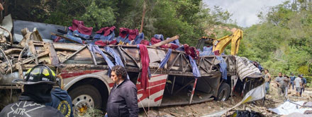 ▲ El vehículo de pasajeros, que provenía de la Ciudad de México con dirección al municipio de Santiago Yosondúa, cayó en un precipicio de 25 metros en la localidad de Magdalena Peñasco, en la región de la Mixteca, informaron autoridades locales. Las primeras indagatorias señalan que el conductor posiblemente perdió el control de la unidad por una falla mecánica. El reporte indica que hay 19 personas lesionadas, quienes fueron trasladadas a un hospital del IMSS en Tlaxiaco. Foto La Jornada. / Jorge A. Pérez y Ricardo Montoua, corresponsales