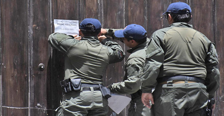 ▲ Integrantes de la Policía Ministerial, encabezados por el fiscal general estatal, Renato Sales Heredia, catearon 22 predios del fraccionamiento Lomas del Castillo, que colindan con la mansión del dirigente nacional del PRI, Alejandro Moreno. En las diligencias estuvo brevemente la gobernadora Layda Sansores, quien ingresó a la vivienda del arquitecto Juan José Salazar Ferrer, presunto testaferro del político. Ninguno de los lotes es mío y el operativo es una farsa, afirmó el líder del tricolor. Foto Cuartoscuro. Lorenzo Chim, Néstor Jiménez y Alma E. Muñoz