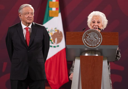 ▲ La integrante del movimiento argentino Abuelas de Plaza de Mayo estuvo ayer en Palacio Nacional con el presidente Andrés Manuel López Obrador, quien la presentó como un ejemplo