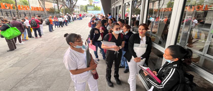 ▲ Más de 200 empleados de la Secretaría de Salud del gobierno capitalino acudieron al Centro Cultural Ollin Yoliztli, una de las tres sedes que estableció el organismo público, para realizar los trámites de incorporación. Muchos expresaron su confianza de asegurar estabilidad laboral, mayor ingreso y mejores prestaciones. Foto Luis Castillo. / Ángel Bolaños
