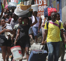 condiciones vulnerables, señala un informe de la Organización Internacional para las Migraciones. En la imagen, éxodo en un barrio de la capital haitiana. Foto Ap. / Agencias