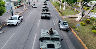 ▲ Arribo de 714 militares e integrantes de la GN a la ciudad veracruzana luego del hallazgo de numerosos cuerpos cercenados y almacenados en neveras en dos viviendas. Foto La Jornada Veracruz. / Eirinet Gómez