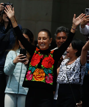 ▲ En un Monumento a la Revolución repleto, la ex jefa de Gobierno concluyó ayer sus asambleas informativas en la capital del país con la reiteración del llamado a la unidad a sus compañeros en la contienda, quienes hoy también cierran actividades en espera de la encuesta. Foto José Antonio López / Alma E. Muñoz